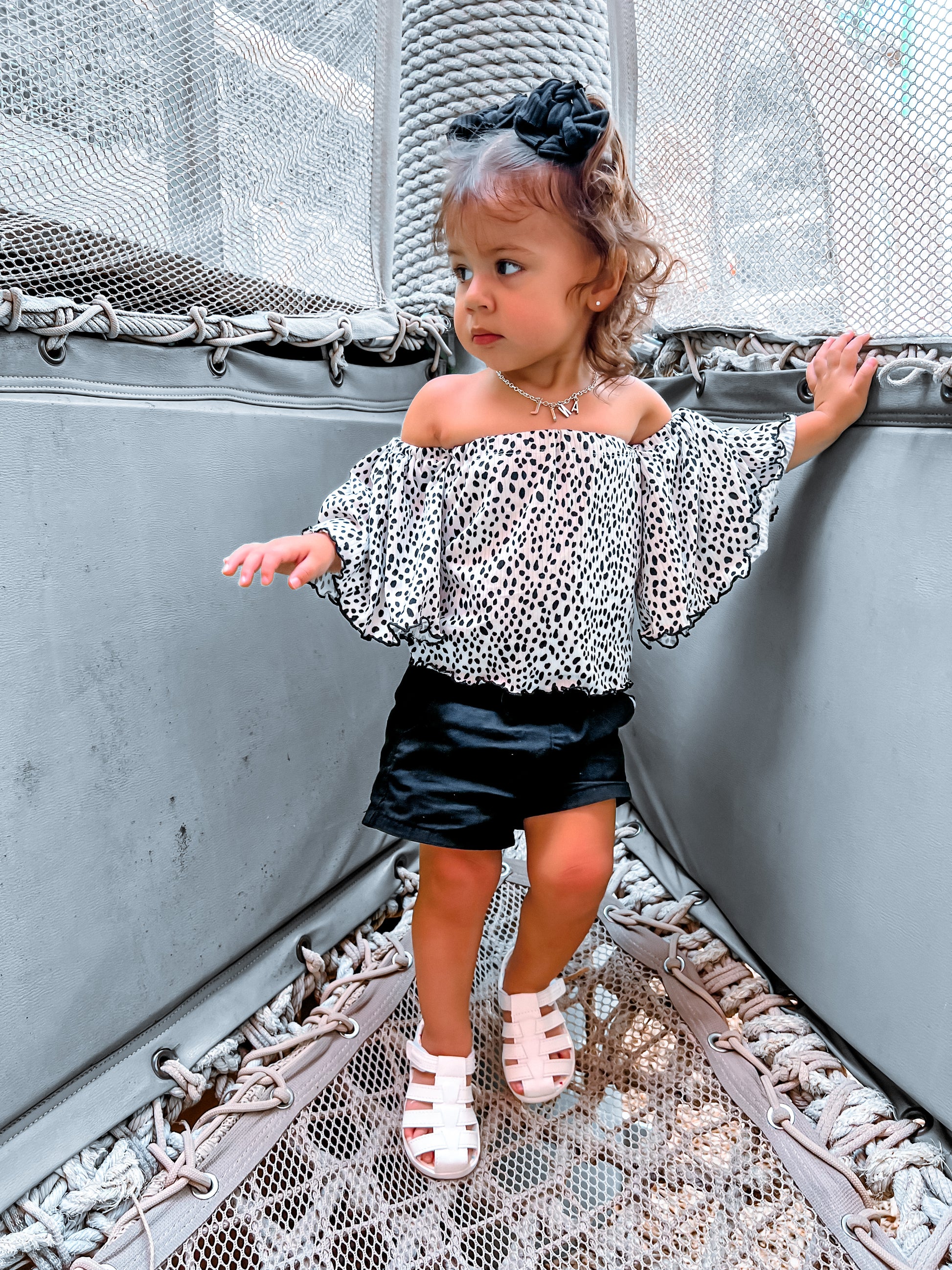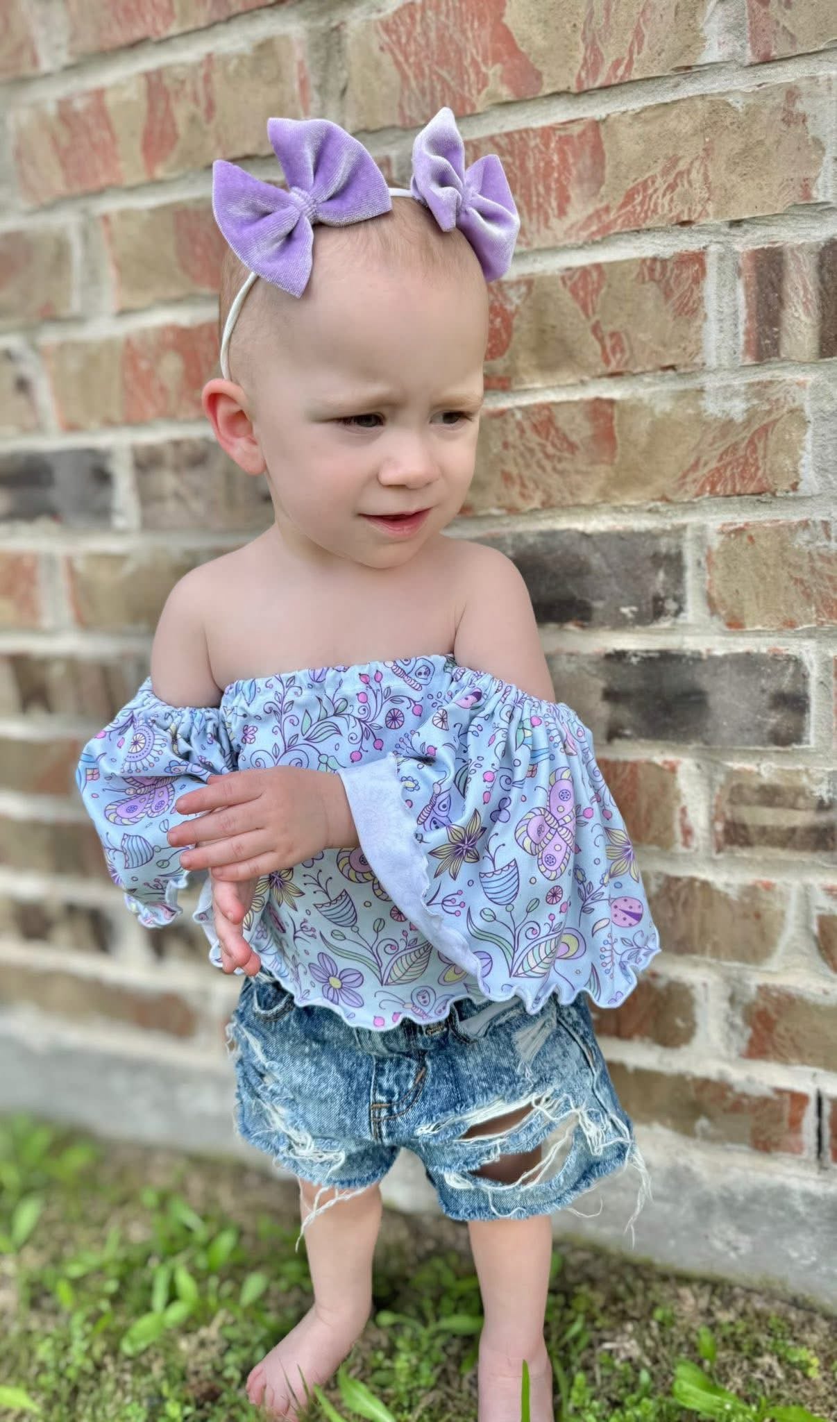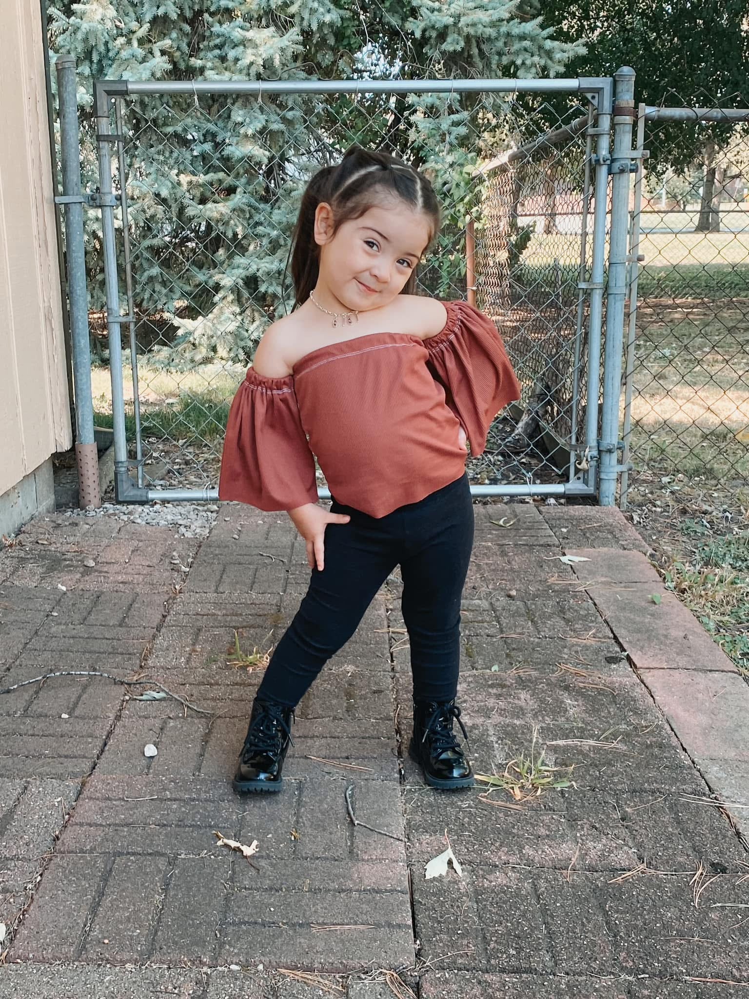 This top is an off the shoulder style top. Both shoulders and arms of shirt are lined with elastic. Lettuce hem is optional ADD ON.