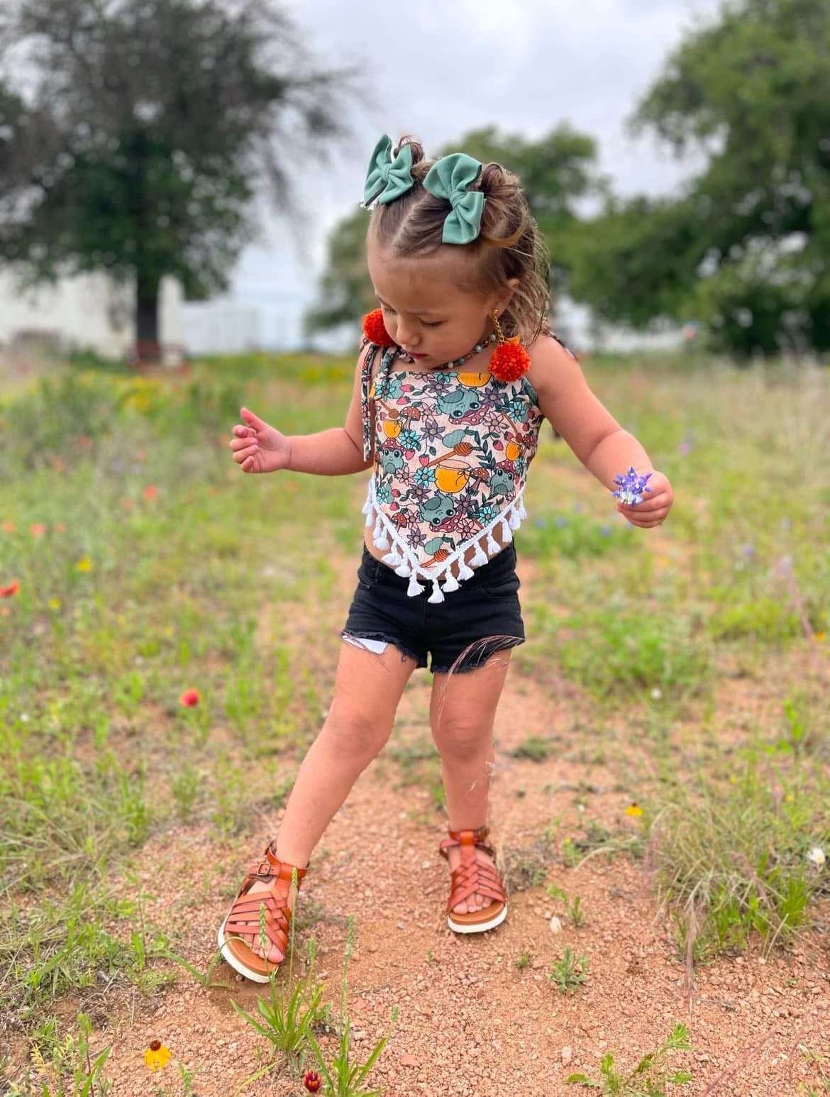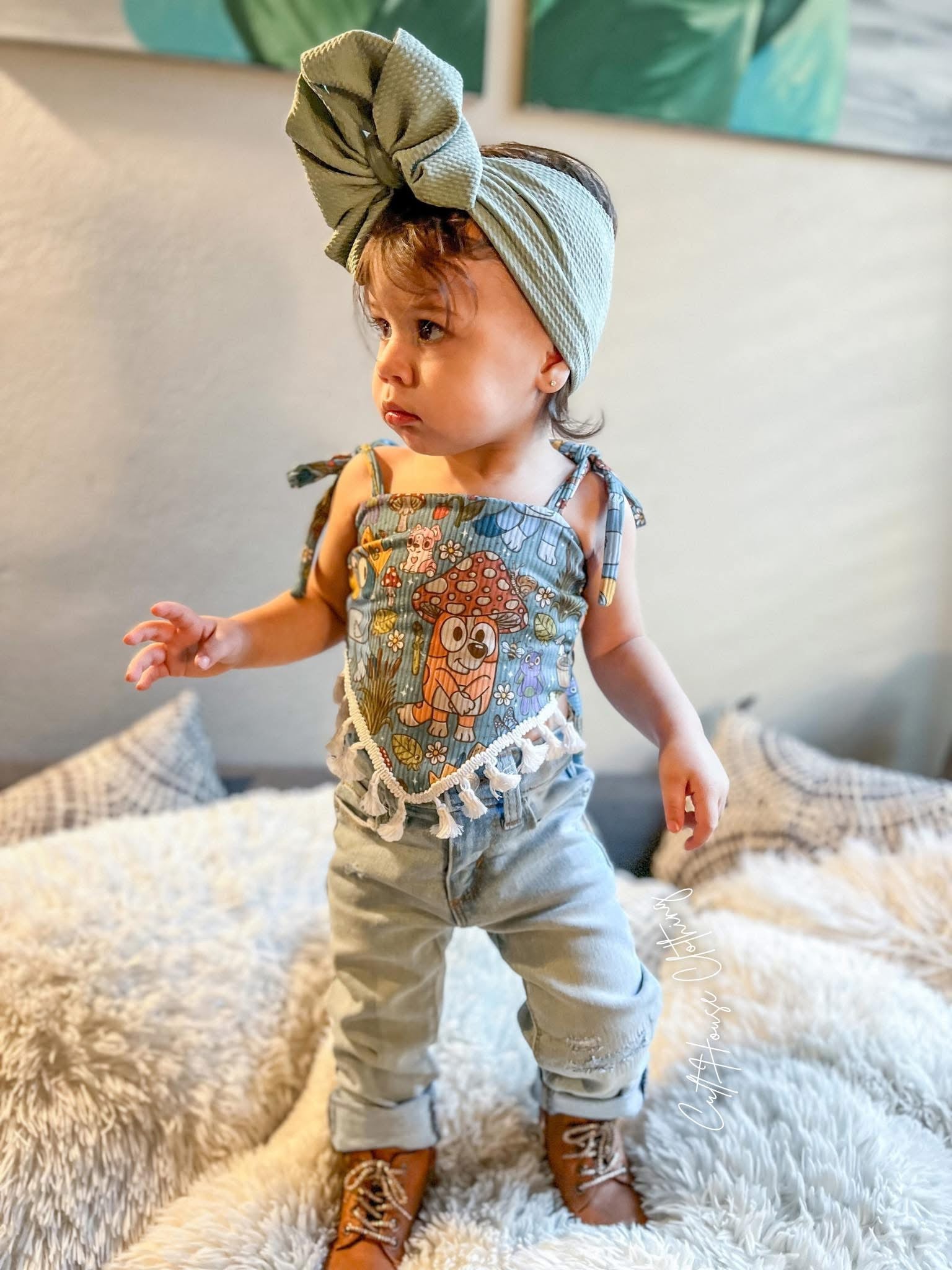 This top has 2 sets of shoulder ties and a back tie as well, giving lots of adjustments for a perfect fit. Tassle Trim is an ADD ON.